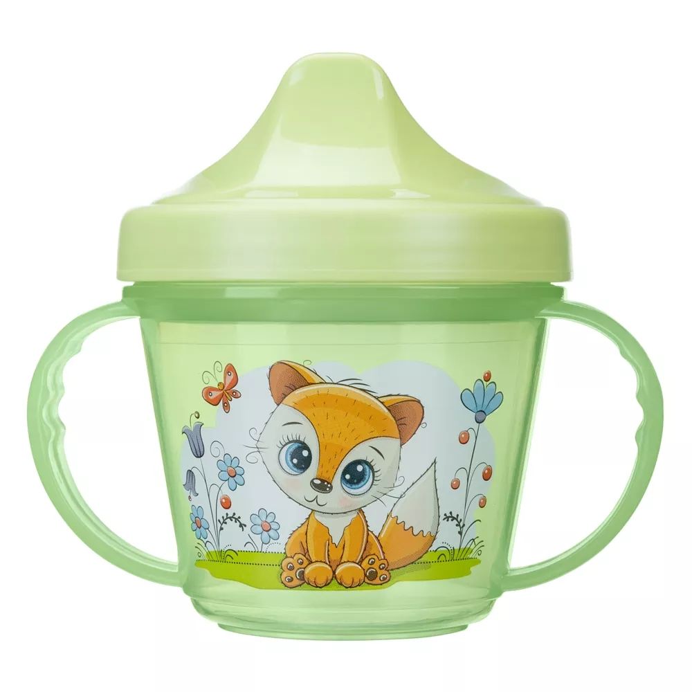 Поильник с ручками и декором, 200МЛ, Салатовый (упаковка 12 шт.)