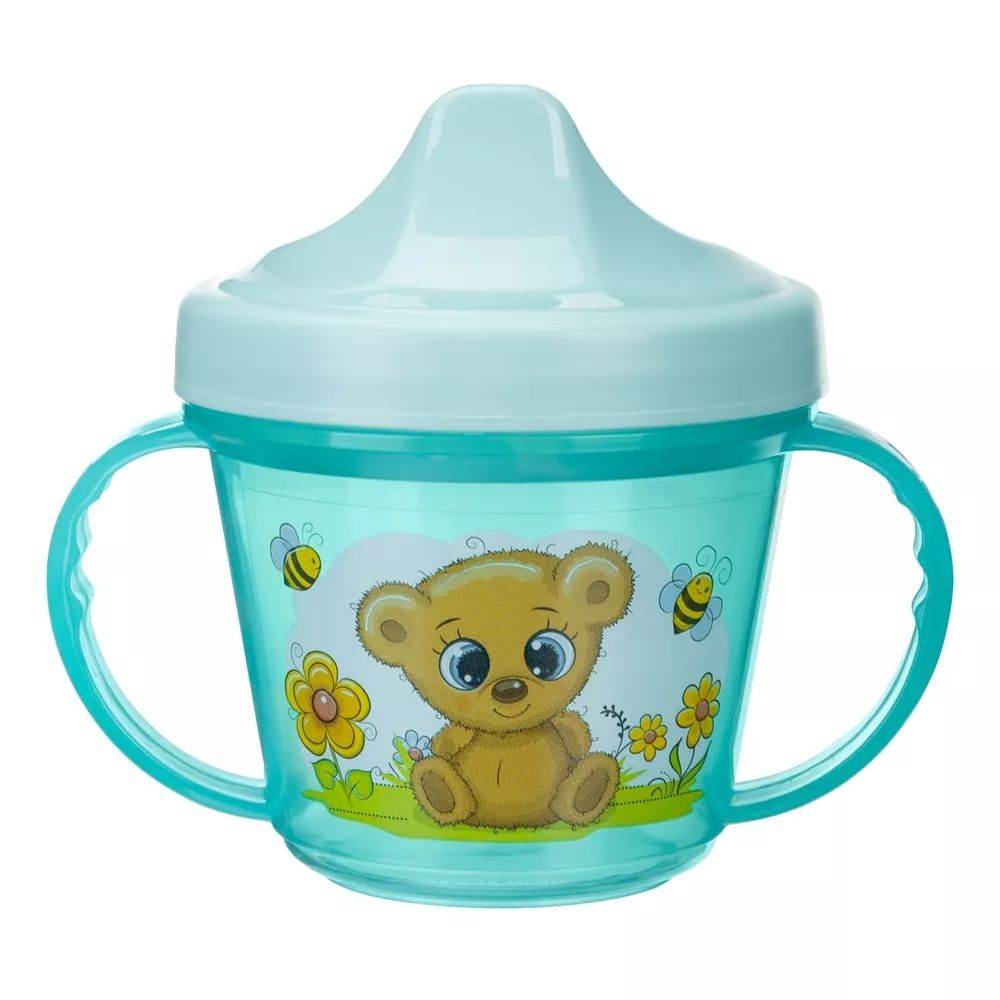 Поильник с ручками и декором, 200мл, Зеленый (упаковка 12 шт.)