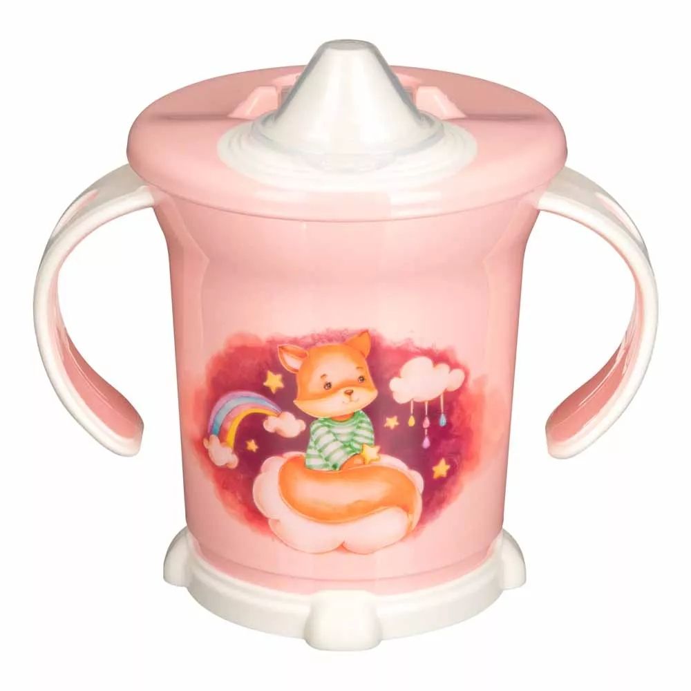 Поильник с ручками и декором, 270МЛ, Светло-розовый (упаковка 12 шт.)