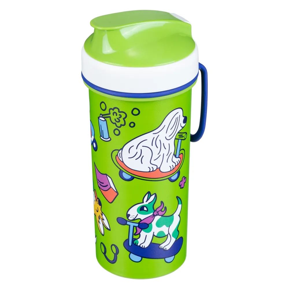 Стакан детский с крышкой, петлей и декором 400мл, Микс 4. Зеленый/Белый (упаковка 12 шт.)
