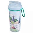 Стакан детский с крышкой, петлей и декором 400мл, Светло-голубой (упаковка 12 шт.)