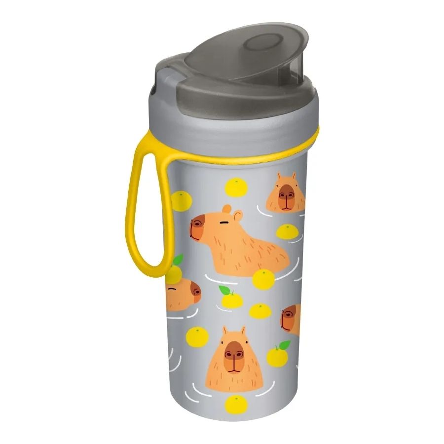 Стакан детский с крышкой, петлей и декором 400мл, Светло-серый (упаковка 12 шт.)