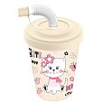 Стакан детский с крышкой, трубочкой и колпачком 280мл с декором Кошечка Светло-бежевый (упаковка 16