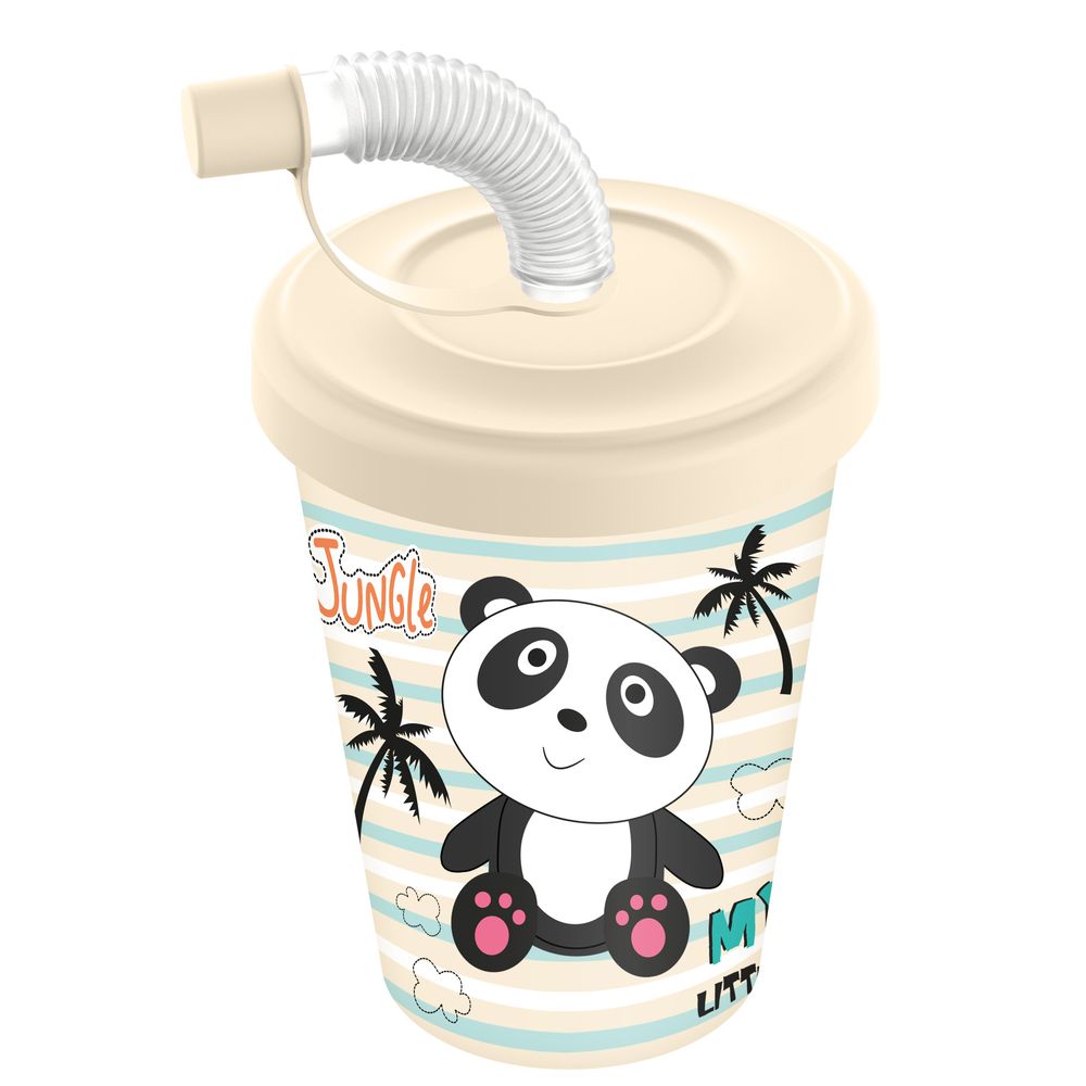 Стакан детский с крышкой, трубочкой и колпачком 280мл с декором Панда Светло-бежевый (упаковка 16 шт
