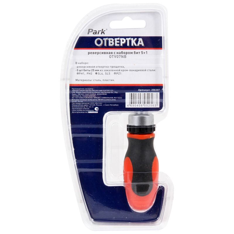 Отвертка реверсивная Park с набором бит 5+1 OTV07NB (упаковка 6 шт.)