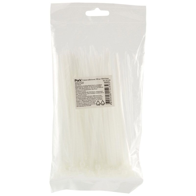 Стяжки кабельные, 100шт, 150х3,6мм, белый (упаковка 25 шт.)