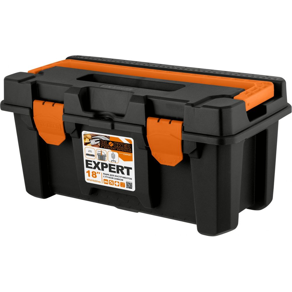 Ящик для инструментов Blocker Expert 18 с ручкой-замком черный/оранжевый (упаковка 6 шт.)
