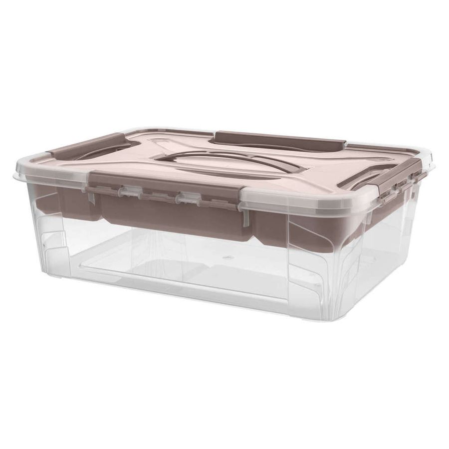 Ящик универсальный с замками и вставкой - органайзером Grand box, 390х290х124мм, 10л, Коричневый (уп