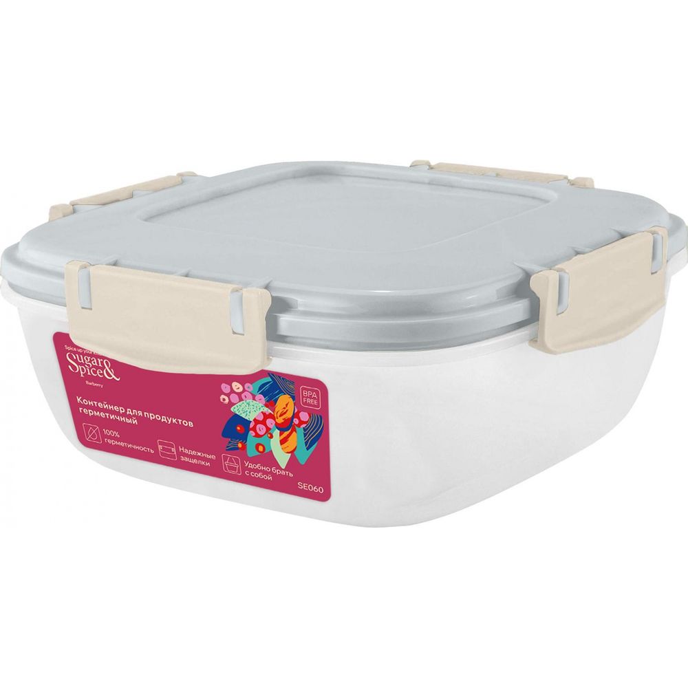 Контейнер для продуктов Sugar&Spice Barberry герметичный 0,7л квадратный трюфель (упаковка 21 шт.)