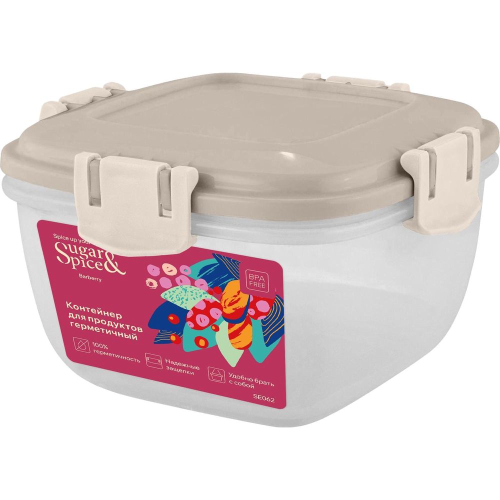 Контейнер для продуктов Sugar&Spice Barberry герметичный 1л квадратный латте (упаковка 17 шт.)
