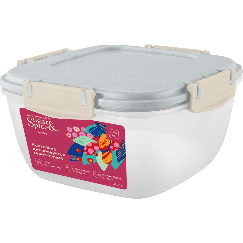 Контейнер для продуктов Sugar&Spice Barberry герметичный 1л квадратный трюфель (упаковка 17 шт.)