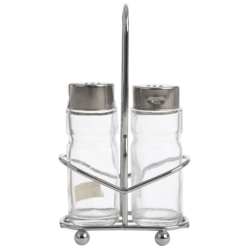 Набор из 3 предметов SPEZIA: солонка 40мл и перечница 40мл на подставке (стекло, нерж стал (упаковка