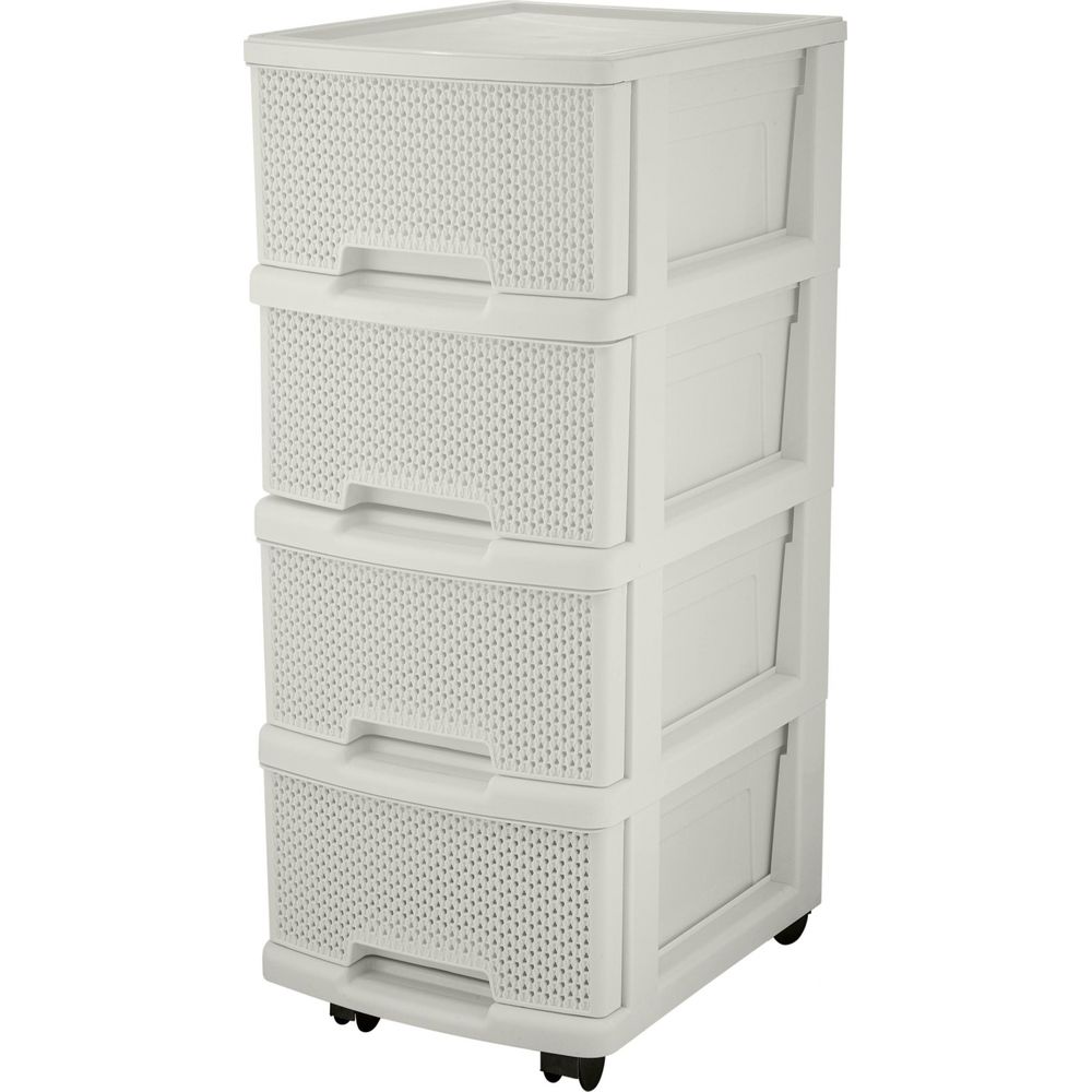 Комод Keeplex Ajur с ящиками на колесиках четырехсекционный компакт 37х30х73см белое облако