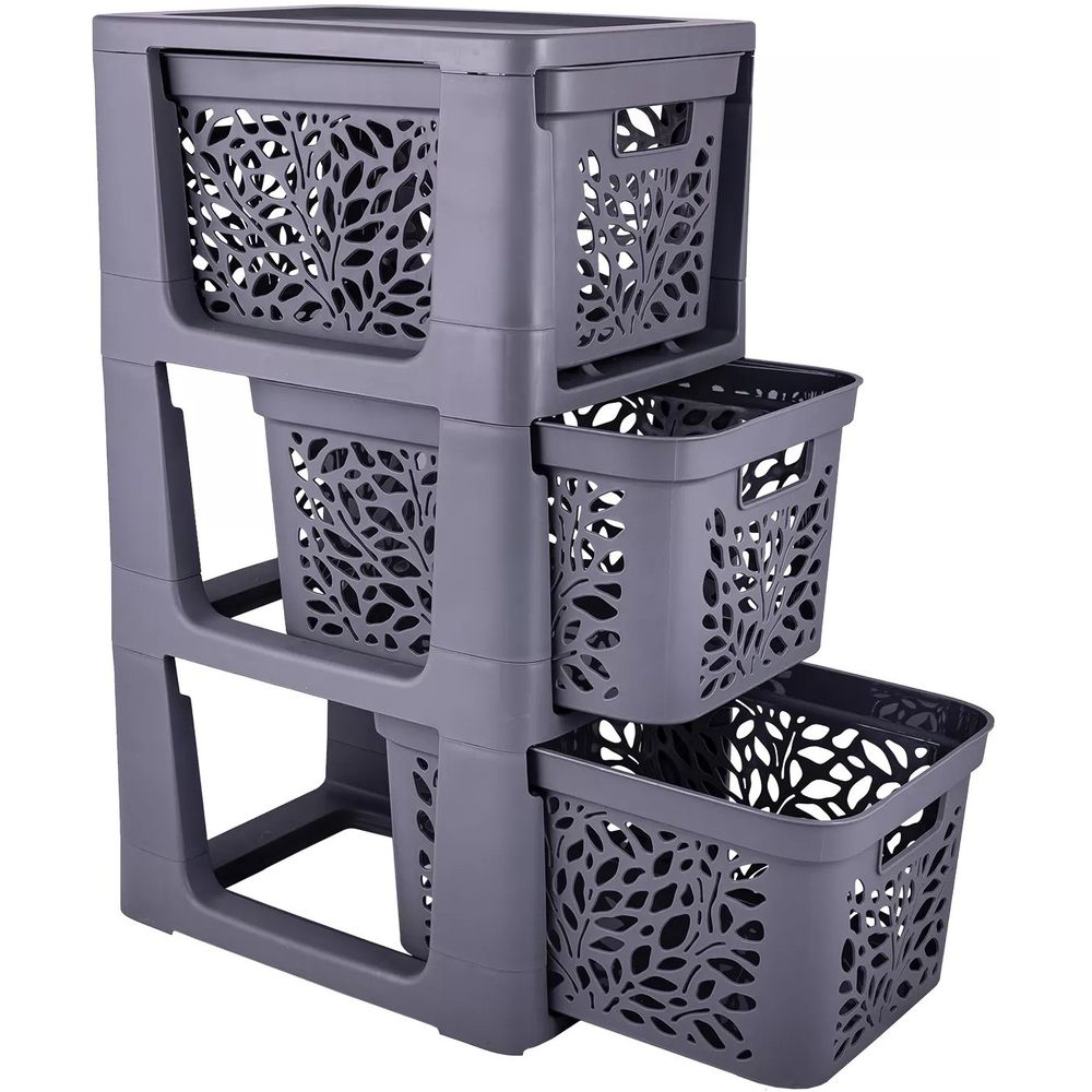 Комод на колесах 3 ящика по 18л Leaves (серый) (упаковка 1 шт.)
