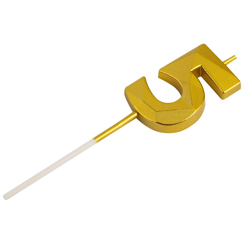 Свеча для торта, золото, цифра 5 (упаковка 12 шт.)