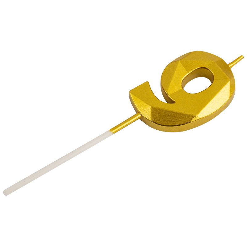 Свеча для торта, золото, цифра 9 (упаковка 12 шт.)