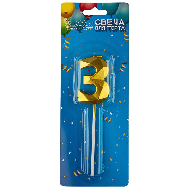 Свеча для торта, золото, цифра 3 (упаковка 12 шт.)