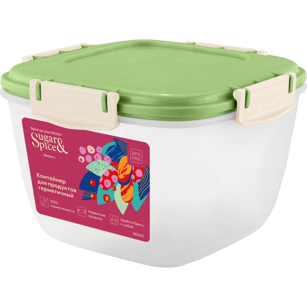 Контейнер для продуктов Sugar&Spice Barberry герметичный 1,35л квадратный фисташка (упаковка 18 шт.)