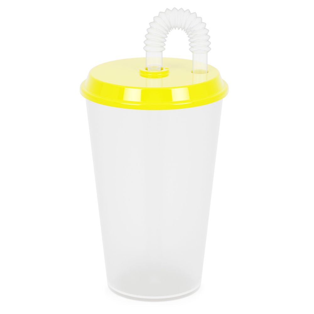 Стакан 0,5л с крышкой и трубочкой, Желтый (упаковка 30 шт.)