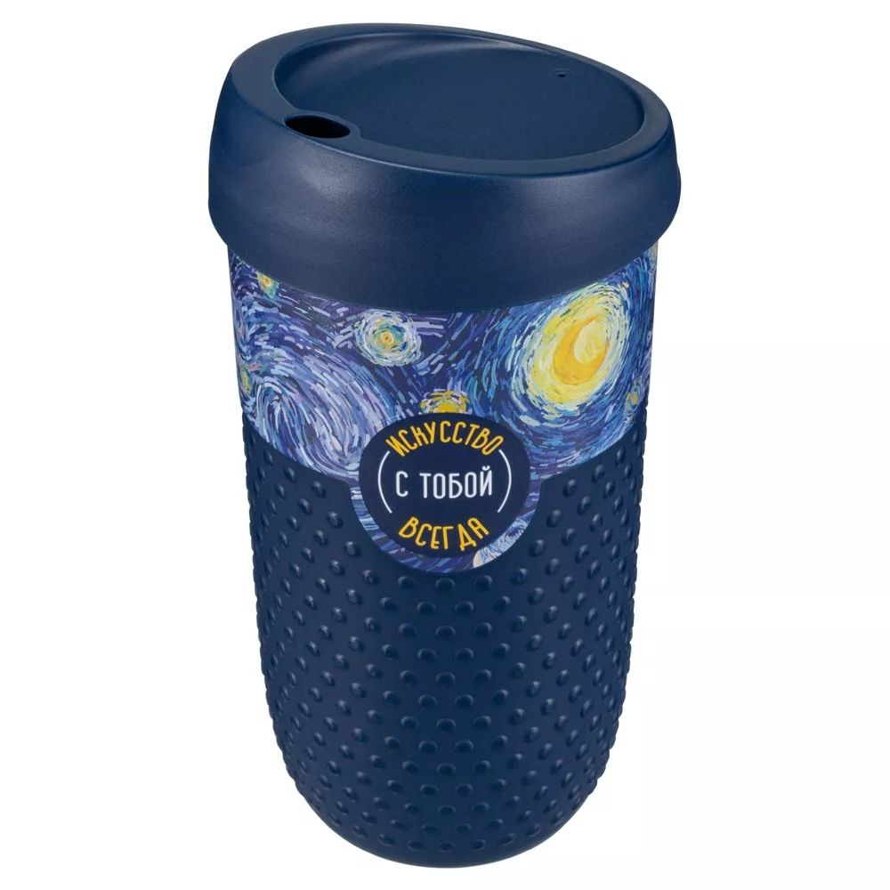 Стакан для напитков с рельефом, крышкой и декором 550мл, Синий (упаковка 12 шт.)