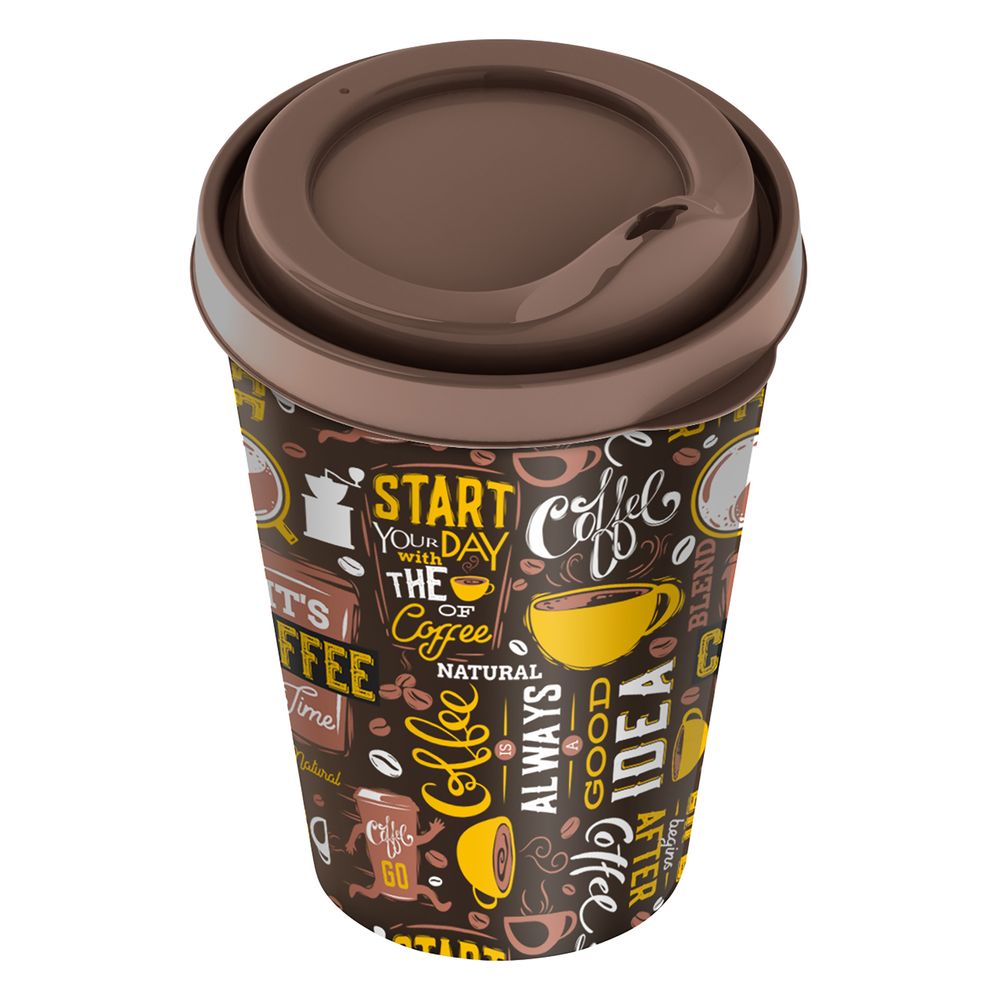 Стакан IZI-GO с крышкой 420 мл с декором (темно-коричневый) (упаковка 24 шт.)