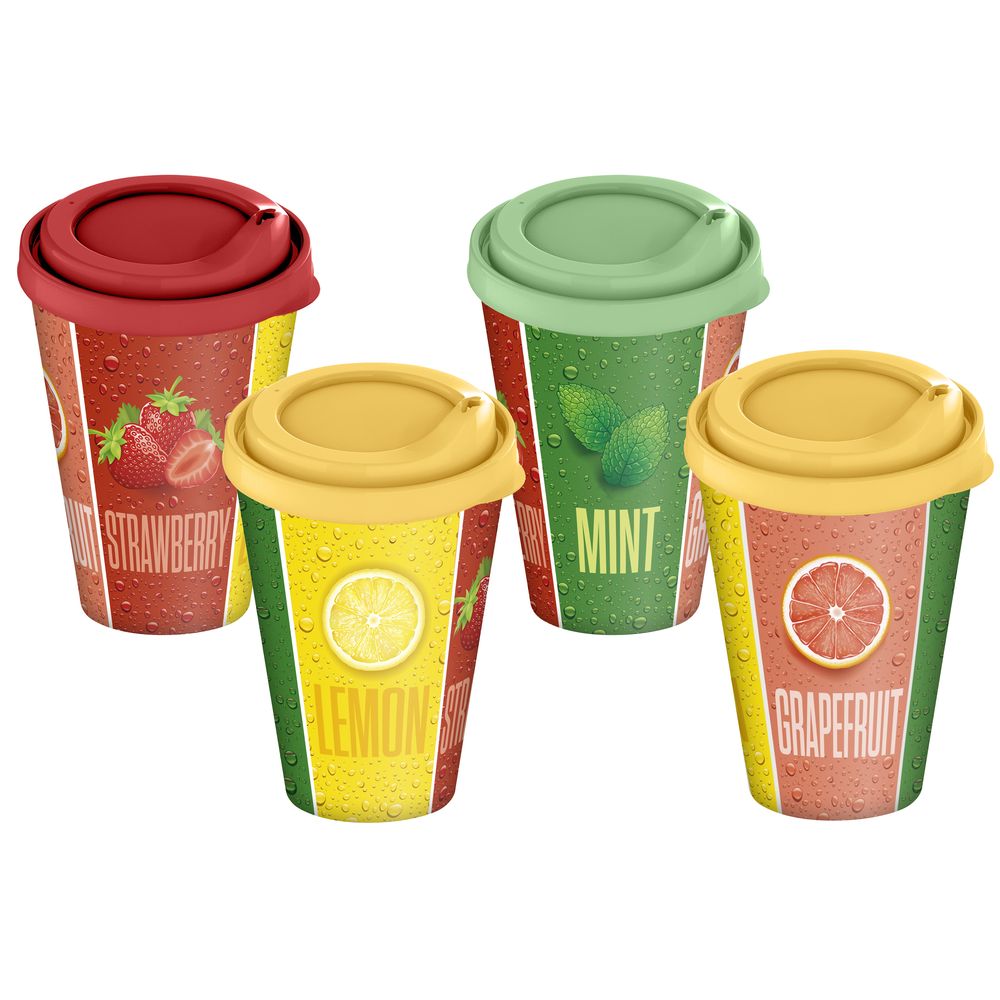 Стакан с крышкой 420мл с декором Фрукты и мята Микс (упаковка 24 шт.)