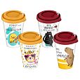 Стакан с крышкой 420мл с декором Веселые надписи Микс (упаковка 24 шт.)