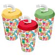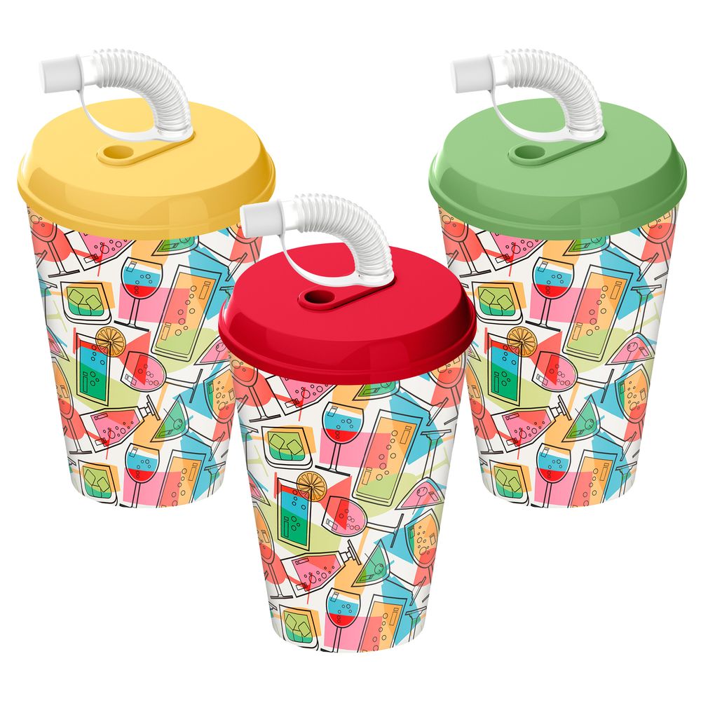 Стакан с крышкой 420мл с декором Вкус праздника с трубочкой c колпачком Микс (упаковка 12 шт.)