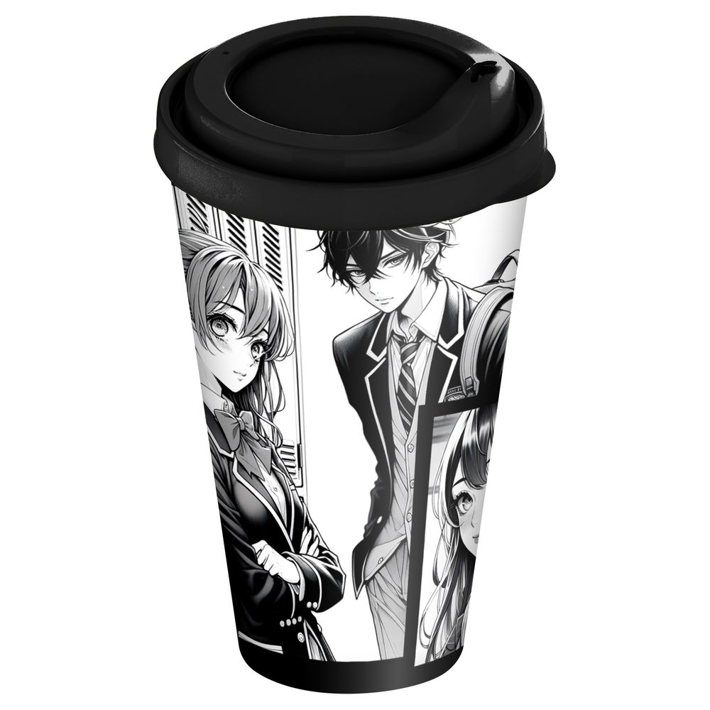 Стакан с крышкой 550мл с декором Аниме Черный (упаковка 24 шт.)