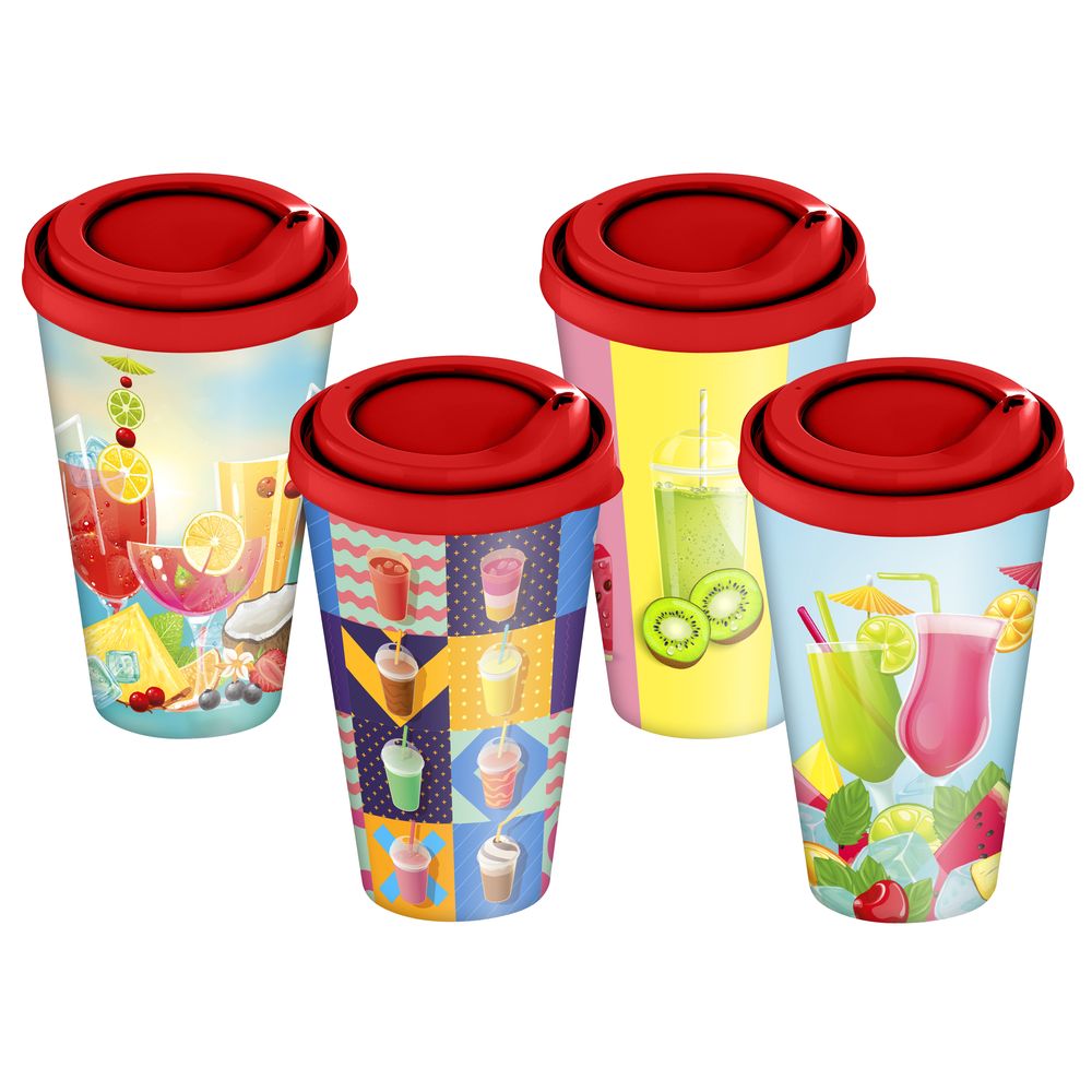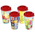 Стакан с крышкой 550мл с декором Коктейль Красный (упаковка 24 шт.)
