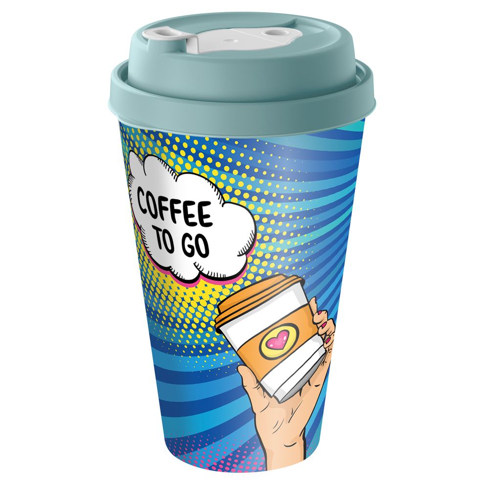 Стакан с крышкой 550мл с декором с клапаном Кофе с собой Зеленый (упаковка 24 шт.)