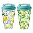 Стакан с крышкой 550мл с декором с клапаном Sicily Lemon Зеленый (упаковка 24 шт.)