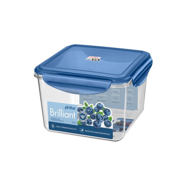 КОНТЕЙНЕР ДЛЯ ПРОДУКТОВ ГЕРМЕТИЧНЫЙ BRILLIANT КВАДРАТНЫЙ 1,7Л (Синий) (упаковка 12 шт.)