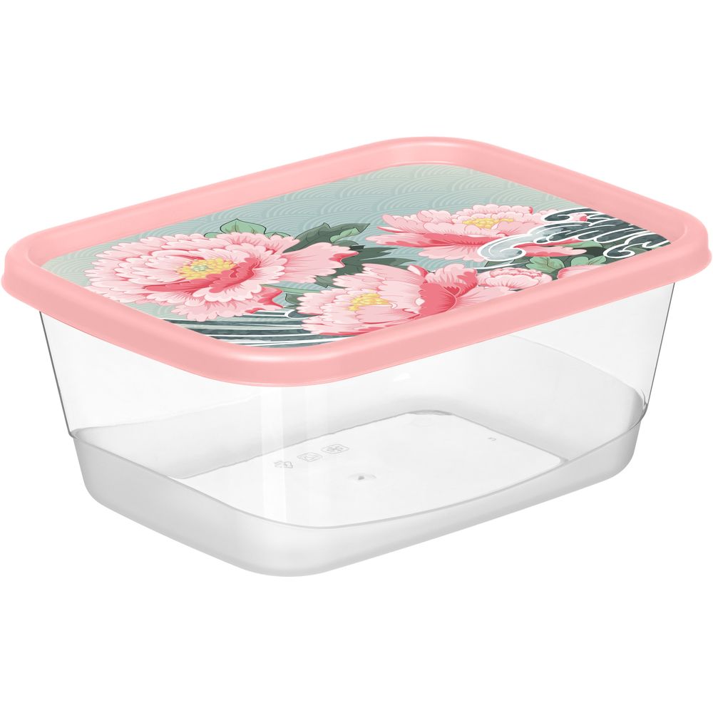 Контейнер для продуктов прямоугольный 1,5л с декором Сад пионов (розовый) (упаковка 20 шт.)