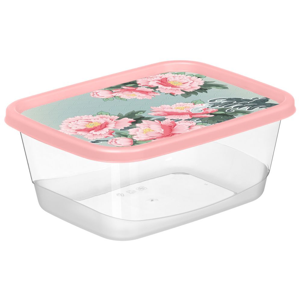 Контейнер для продуктов прямоугольный 1,5л с декором Сад пионов (розовый) (упаковка 20 шт.)