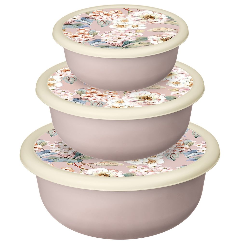 Комплект мисок Modena 3 шт. (1,2л+2,1л+3,2л) с крышками с декором (бежевый) (упаковка 13 шт.)