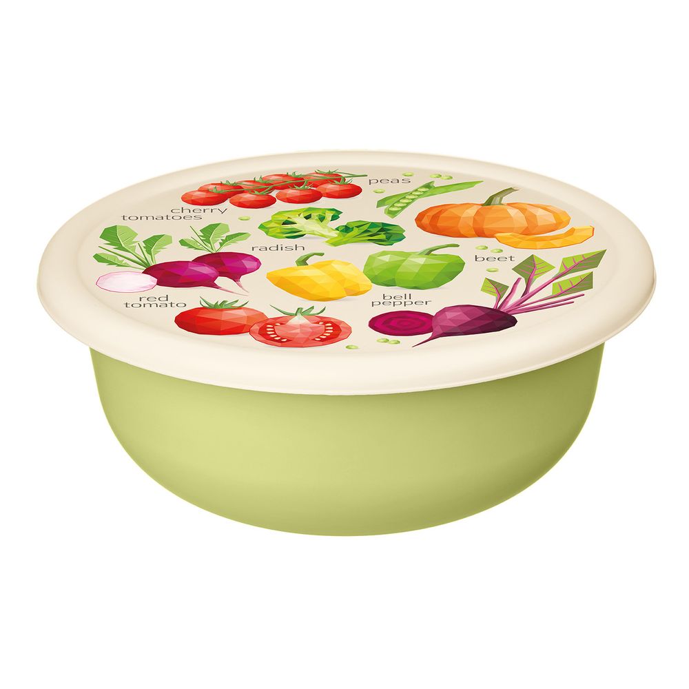Миска 2,1л с крышкой с декором (салатовый) (упаковка 24 шт.)