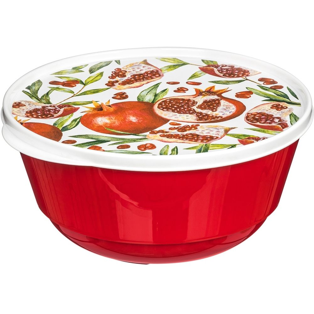 Миска Bergamo 1л с крышкой с декором (красный) (упаковка 24 шт.)