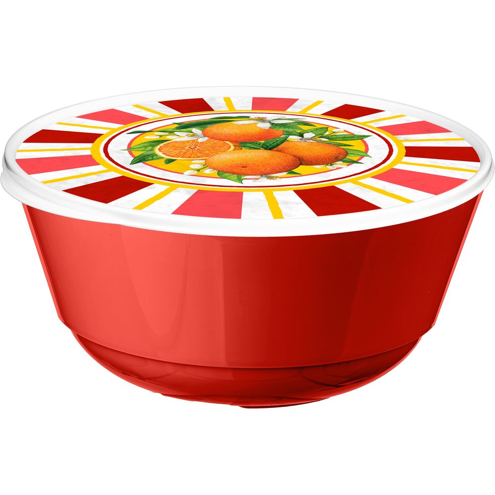 Миска Bergamo 2л с крышкой с декором Сицилия Красный (упаковка 20 шт.)