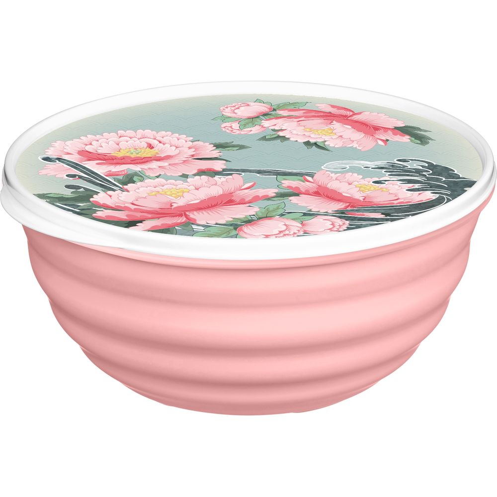 Миска Latina 2,1л с крышкой с декором Сад пионов (розовый) (упаковка 18 шт.)