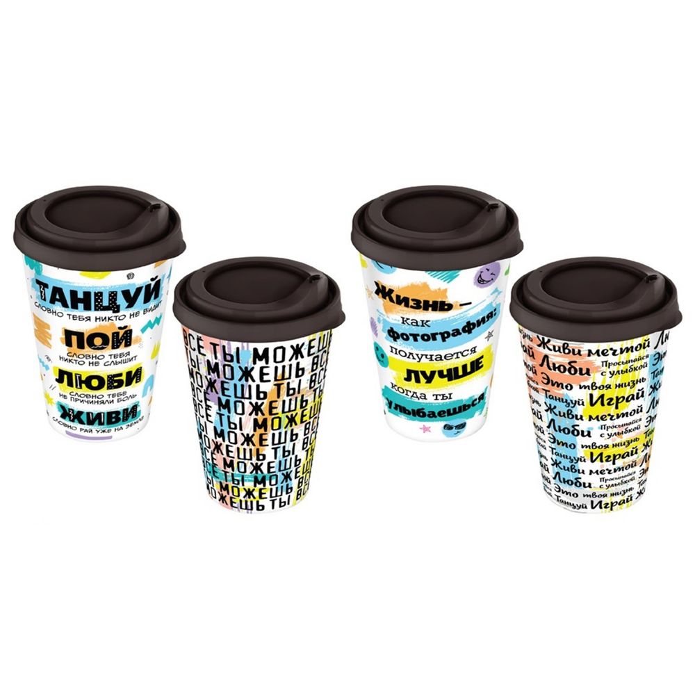 Стакан IZI-GO с крышкой 550мл с декором (черный) (упаковка 24 шт.)