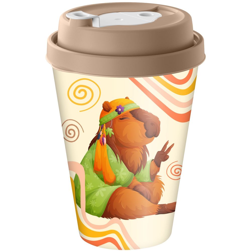 Стакан с крышкой 420мл с декором с клапаном Капибары, Бежевый