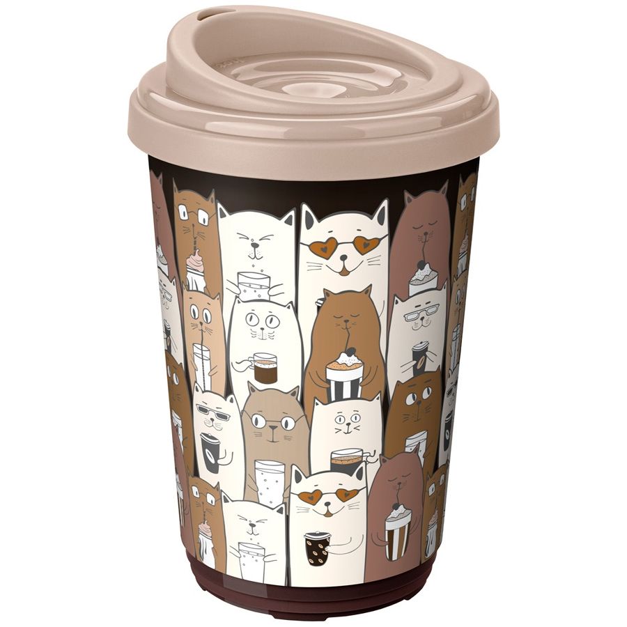 Термостакан с декором Кошки 400 мл, Темно-бежевый (упаковка 6 шт.)