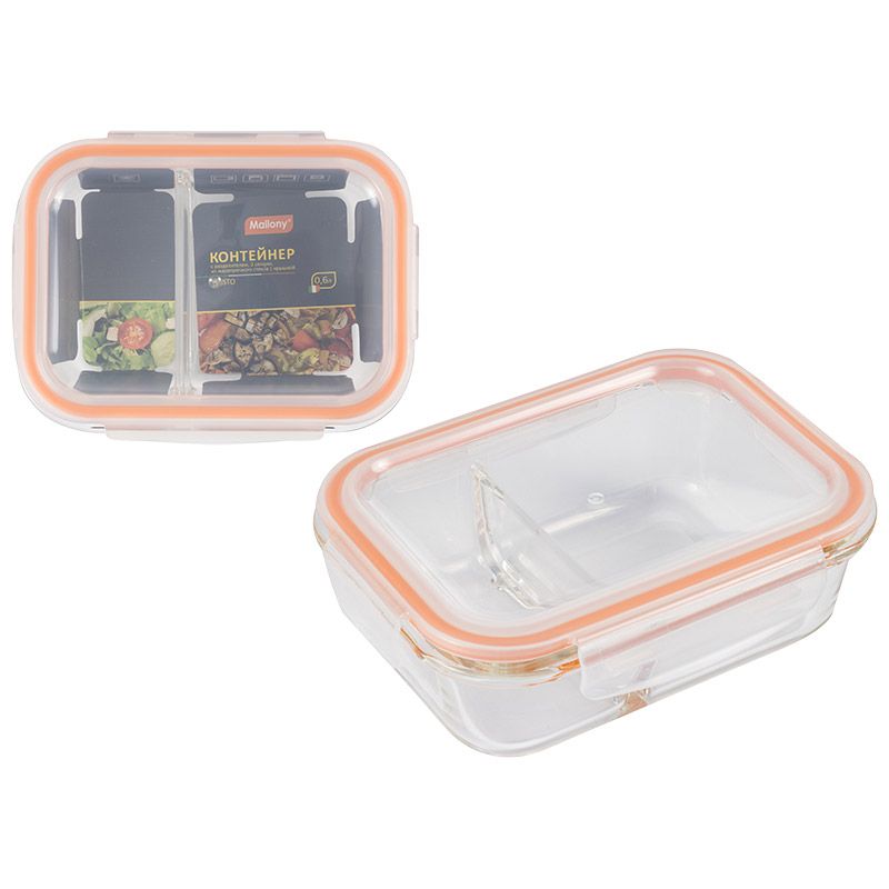 Контейнер GUSTO, 600 мл, 2 секции, из жаропроч. стекла с крышкой с защёлками, темп.режим - (упаковка