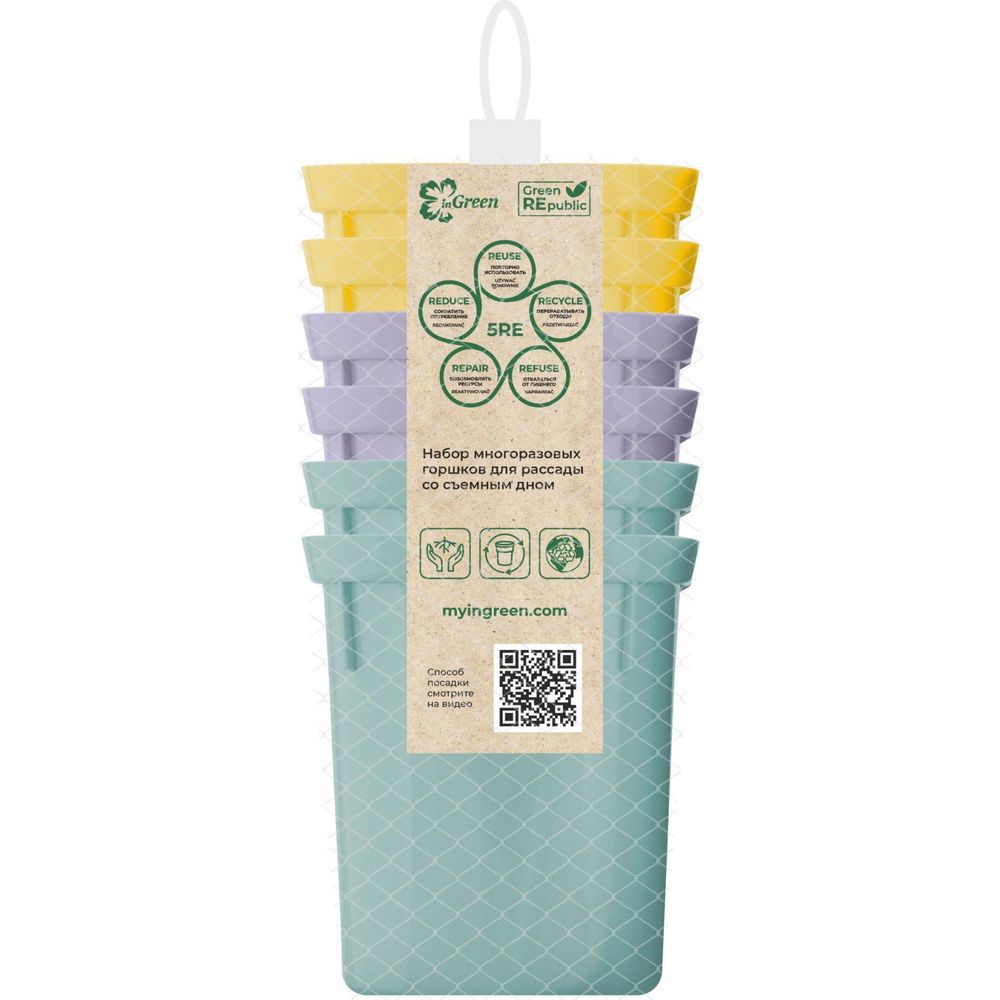 Набор многоразовых горшочков для рассады InGreen со съемным дном 400мл, 6шт в сетке с подвесом микс