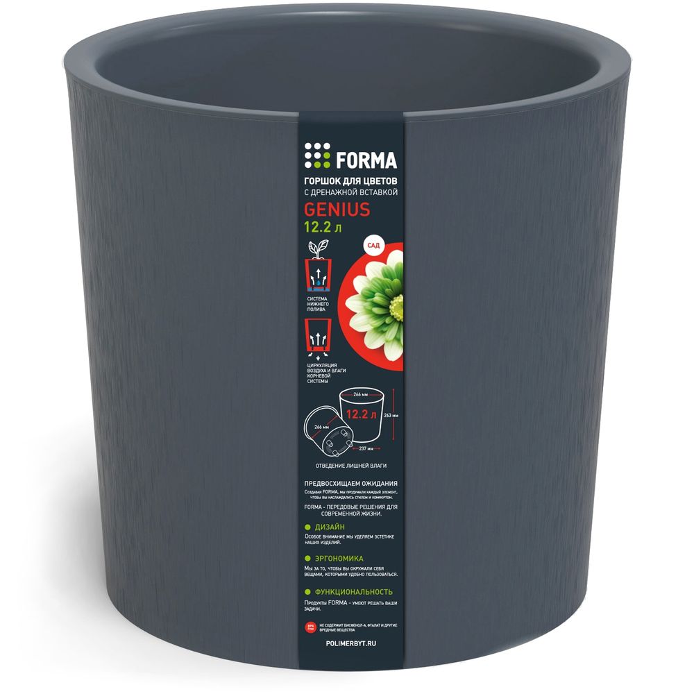 Горшок для цветов с дренажной вставкой Genius 12,2л (d266, h263мм) (серый)