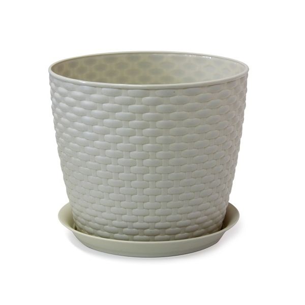 Кашпо РОТАНГ D210мм 4,7л с поддоном белый ротанг 0,181х0,21х0,21м (упаковка 20 шт.)