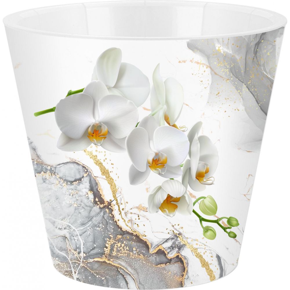 Горшок для цветов InGreen London Orchid Deco D160 мм, 1,6 л с дренажной вставкой, белая орхидея (упа