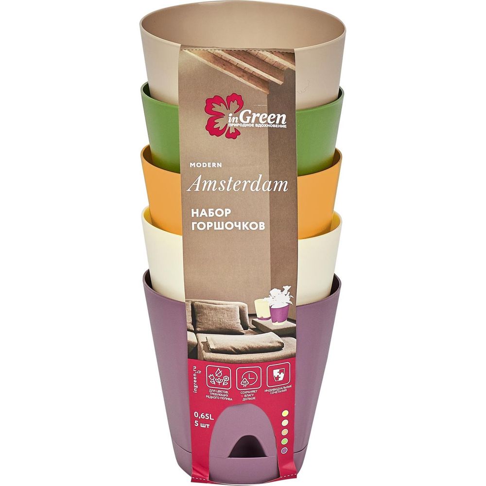 Набор горшочков для цветов AMSTERDAM D110мм / 0,65л с прикорневым поливом 5шт. микс (упаковка 12 шт