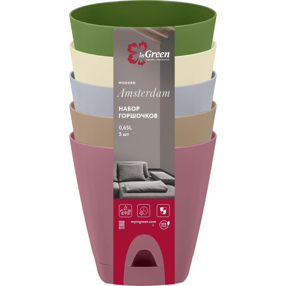 Набор горшочков для цветов AMSTERDAM D110mm / 0,65l с прикорневым поливом 5шт. микс2 (упаковка 12 ш